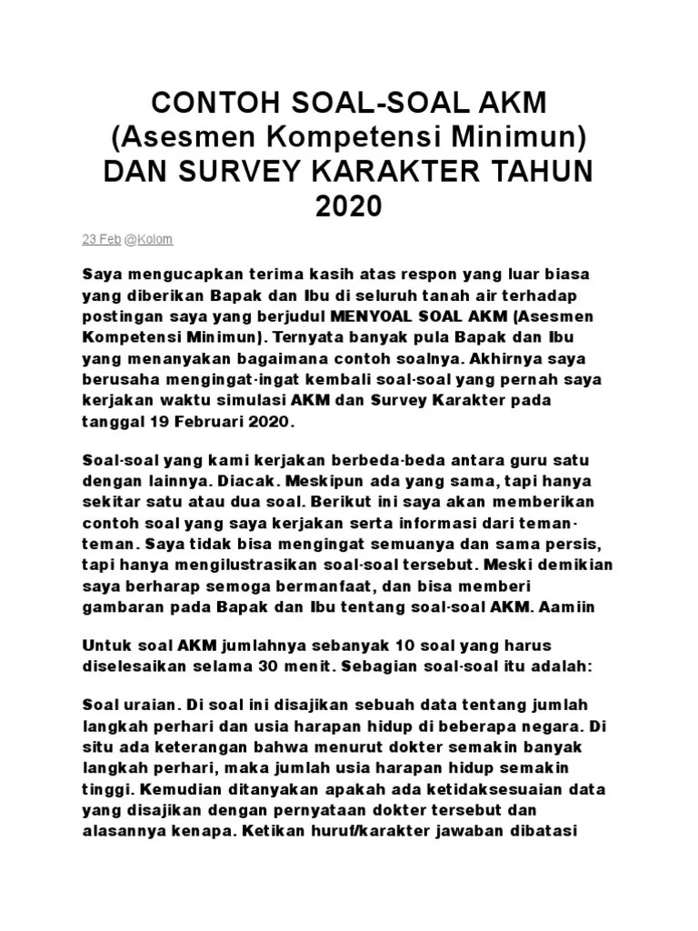 Contoh soal akm online kelas 11 dan 12 sma level 6 (literasi) amongguru.com. Latihan soal akm asesmen kompetensi minimum bahasa inggris smp. Saat ini saya berprofesi sebagai guru biologi disebuah sekolah negeri tingkat menengah . Soal asesmen literasi membaca tingkat sma level pembelajaran 1 teks . Akm dan implikasinya dalam pembelajaran (pdf).